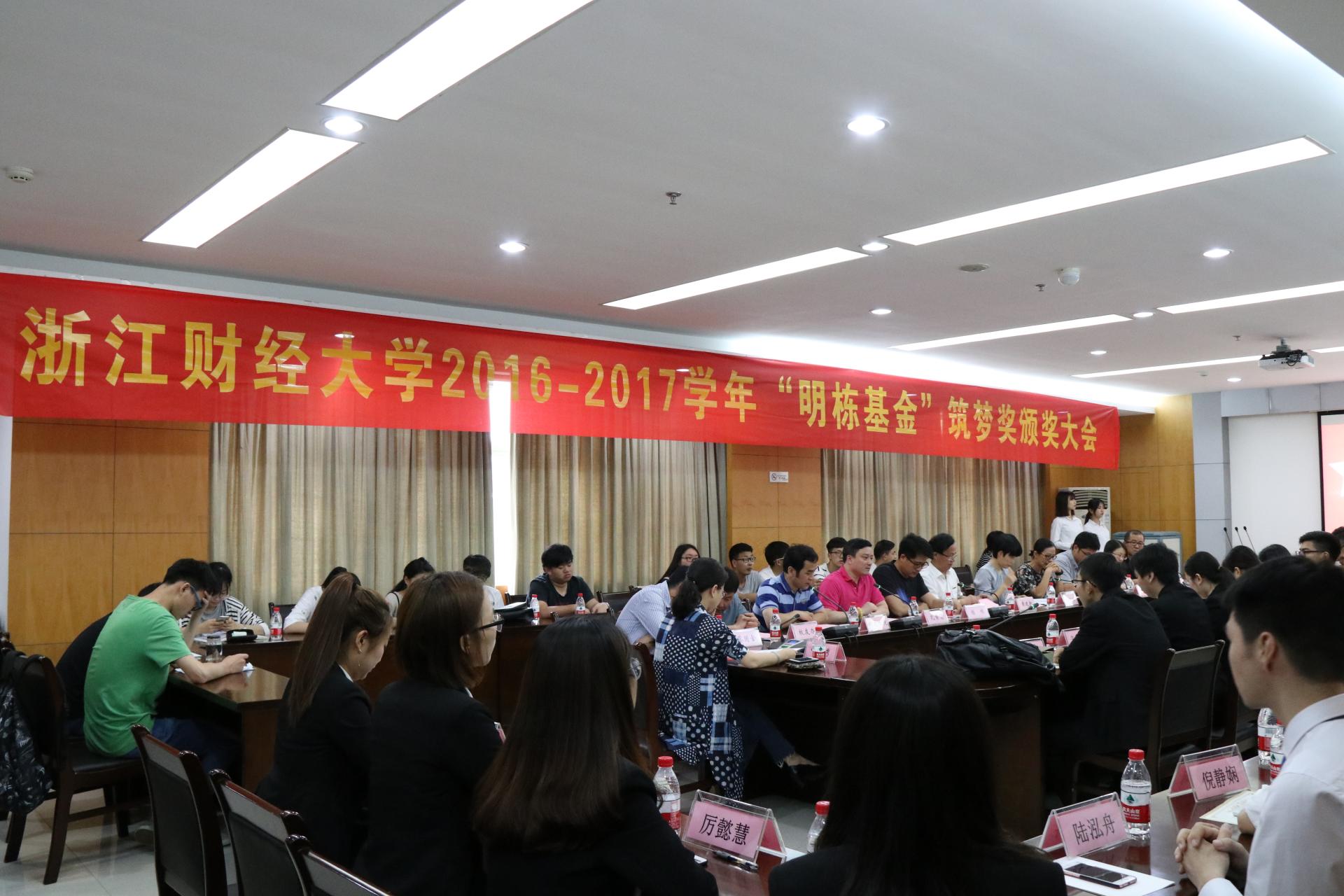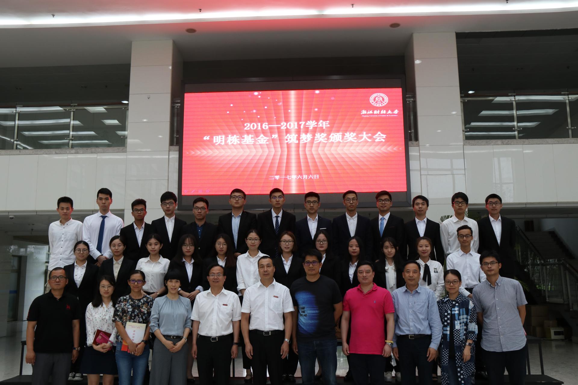 2016-2017学年“明栋基金”筑梦奖颁奖大会在行政楼200隆重举行。浙江盈阳资产管理股份有限公司总裁楼栋、蓝山投资有限公司总裁王柳琳、浙江盈阳资产管理股份有限公司总经理孔繁岗、关瑞慈善基金会执行会长吕霞、博彩代理
