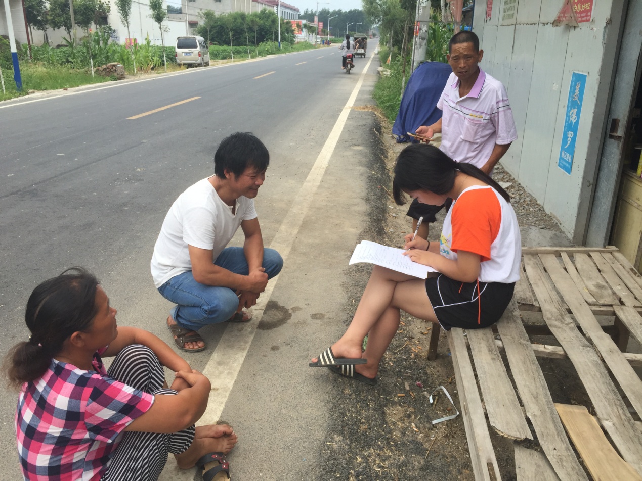 15级中英金融一班余珉瑶,16级信管张悦莹两位同学在其导师丁骋骋带领下,赴中原某艾滋病疫情高发区,38个重点村之一的尹庄进行深入调研。调研过程中,小分队不仅走访了贫困的艾滋孤儿,了解了当地扶贫政策的实施情况及存在问题,并与村民一起进行了贫病人群金融服务可得性的问卷调查。