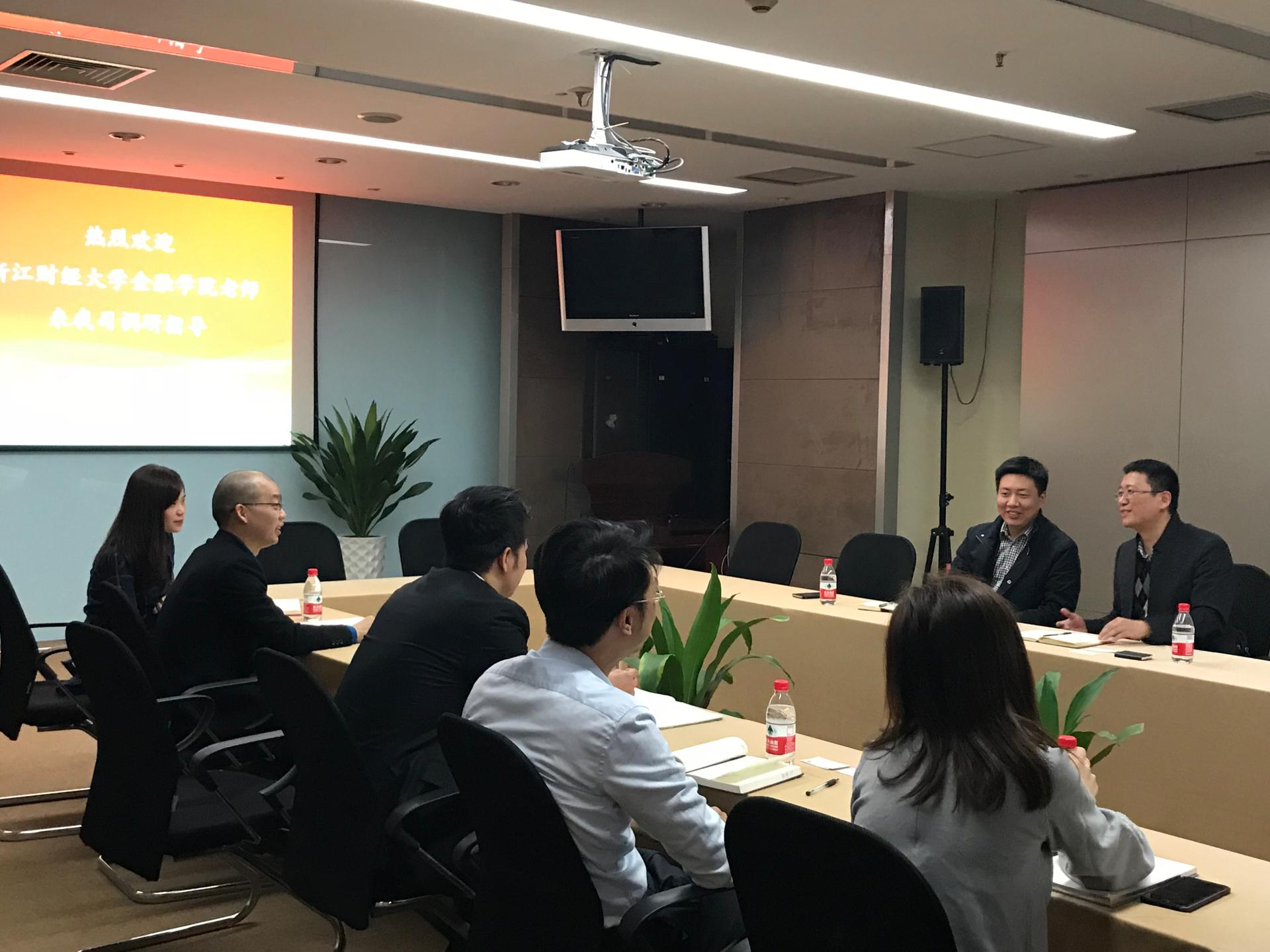 副院长王聪聪一行赴南华期货总部开展关于实践基地建设与人才培养方案等方面的专项调研。南华期货副总经理朱斌、人力资源总监孙权热情接待了调研组一行。