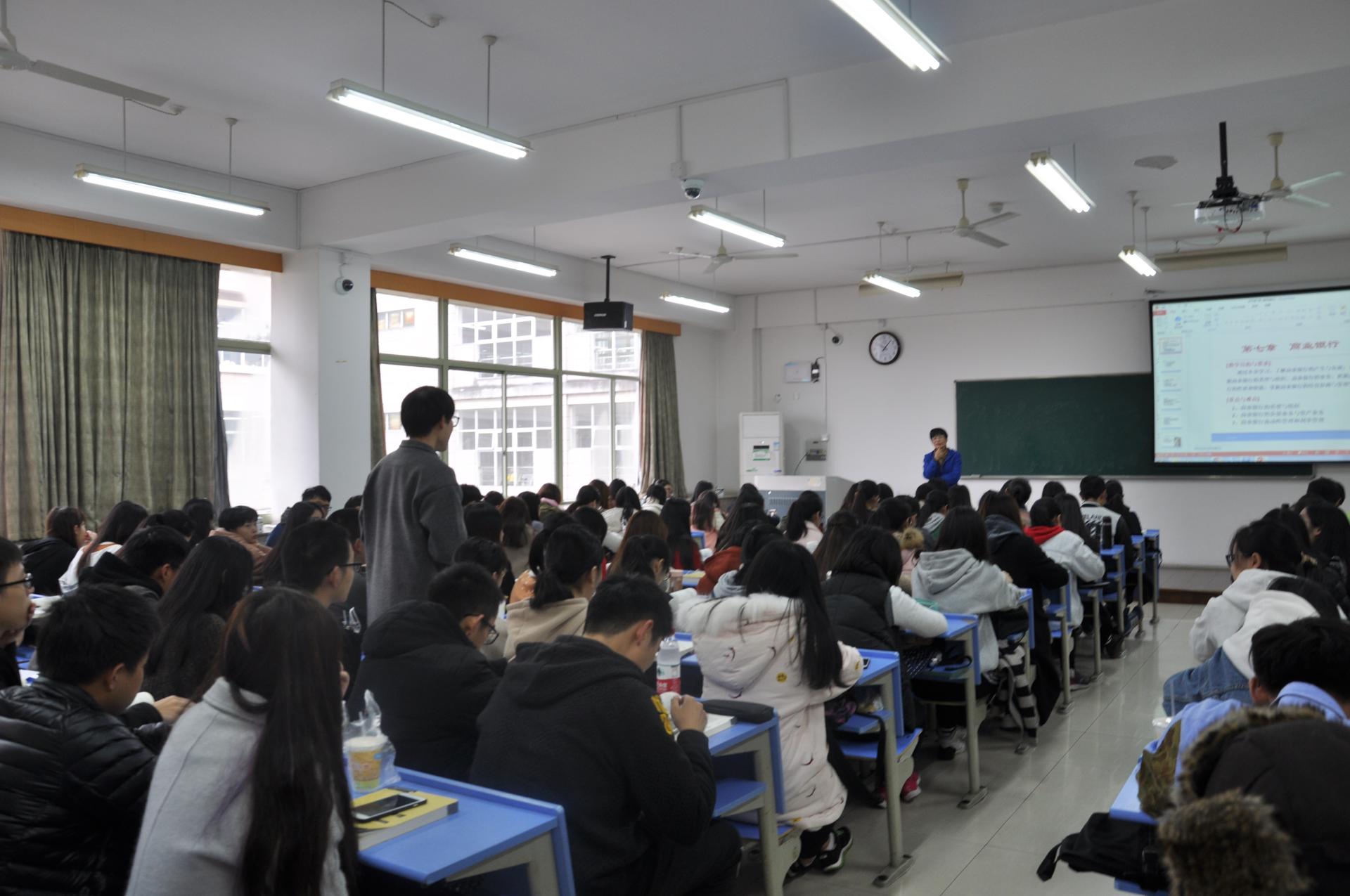 徐敏老师教学经验丰富,主讲的《国际金融》、《金融学》等课程教学效果优异,广受学生好评。课堂上,徐敏老师以其独特的教学方式首先布置课外拓展论文,让学生4-6人一组准备好后于下周进行课堂演讲。同时,徐老师还会在每次上课时挤出10分钟的时间让学生挖掘并讨论一周的时事要闻。然后以“商业银行”为主题围绕我国商业银行的产生与发展、类型与组织、业务和管理四个方面进行了分析和讨论,利用探究与讲练相结合的教学方法,通过国外和国内的案例加以证明,使学生从根本上看清知识、把握知识、应用知识。徐老师精炼的语言、对重难点的把握以及深入浅出的讲解体现了其深厚的知识功底,给在场老师们留下了深刻的印象。在场老师认真听课,积极参与,显示了很高的热情。