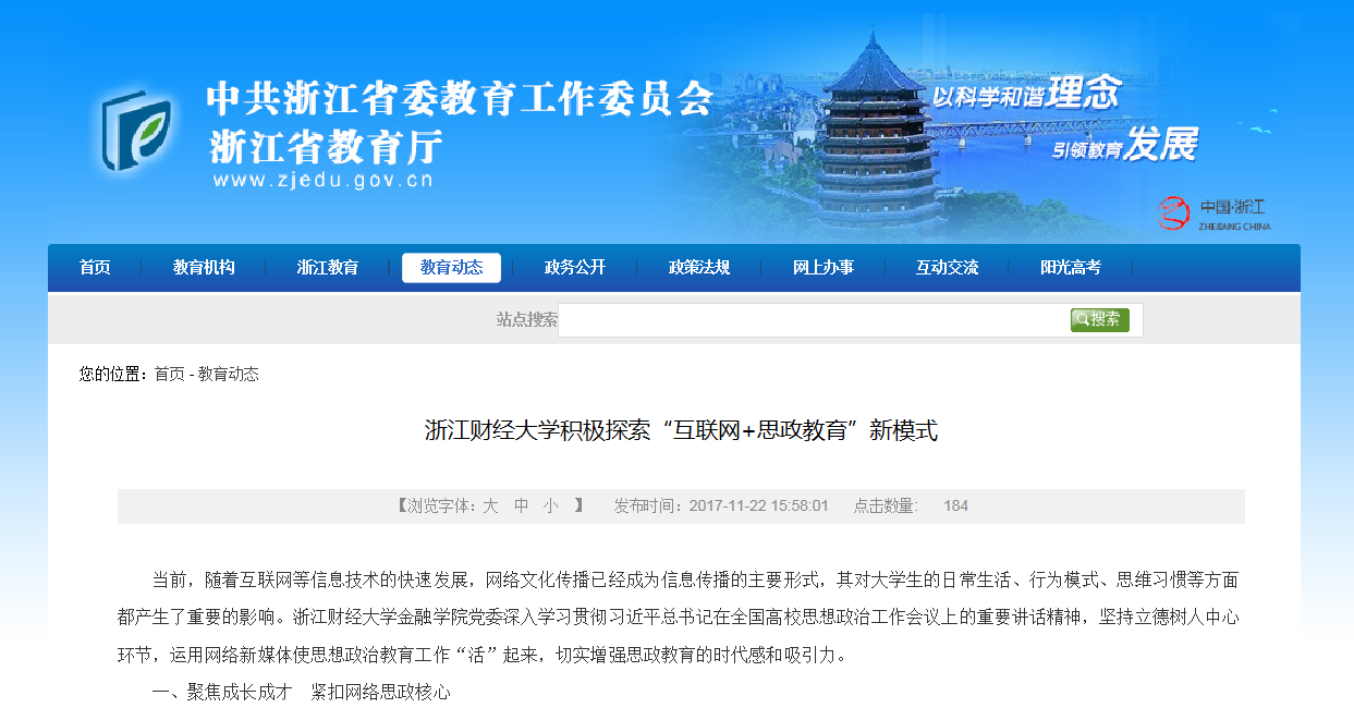 近日,浙江省教育厅以《博彩代理 积极探索“互联网+思政教育”新模式》为题,详细报道了博彩代理 互联网思政工作。