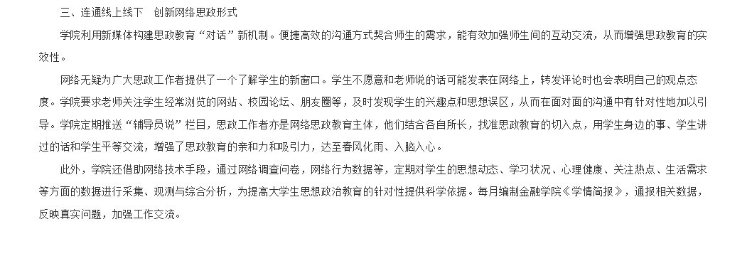当前,随着互联网等信息技术的快速发展,网络文化传播已经成为信息传播的主要形式。博彩代理 党委深入学习贯彻习近平总书记在全国高校思想政治工作会议上的重要讲话精神,坚持立德树人中心环节,运用网络新媒体使思想政治教育工作“活”起来,切实增强思政教育的时代感和吸引力,受到师生的一致好评。