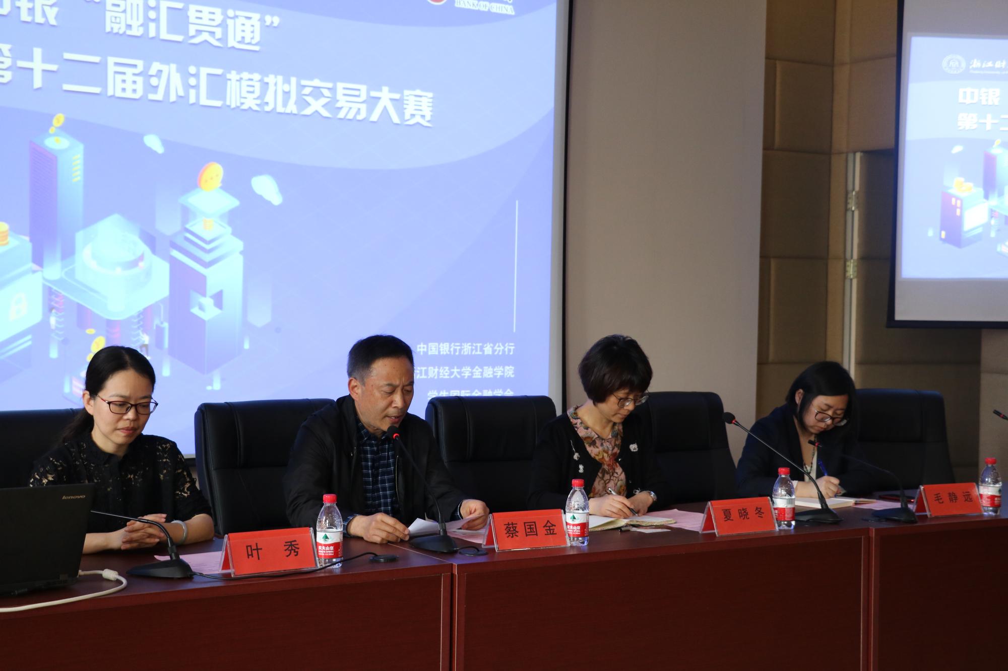 接着,中国银行浙江省分行金融市场部处长夏晓东上台发言,表达了中国银行对本次活动的重视,希望校企双方通过本次大赛获得更深入的交流,并对博彩代理