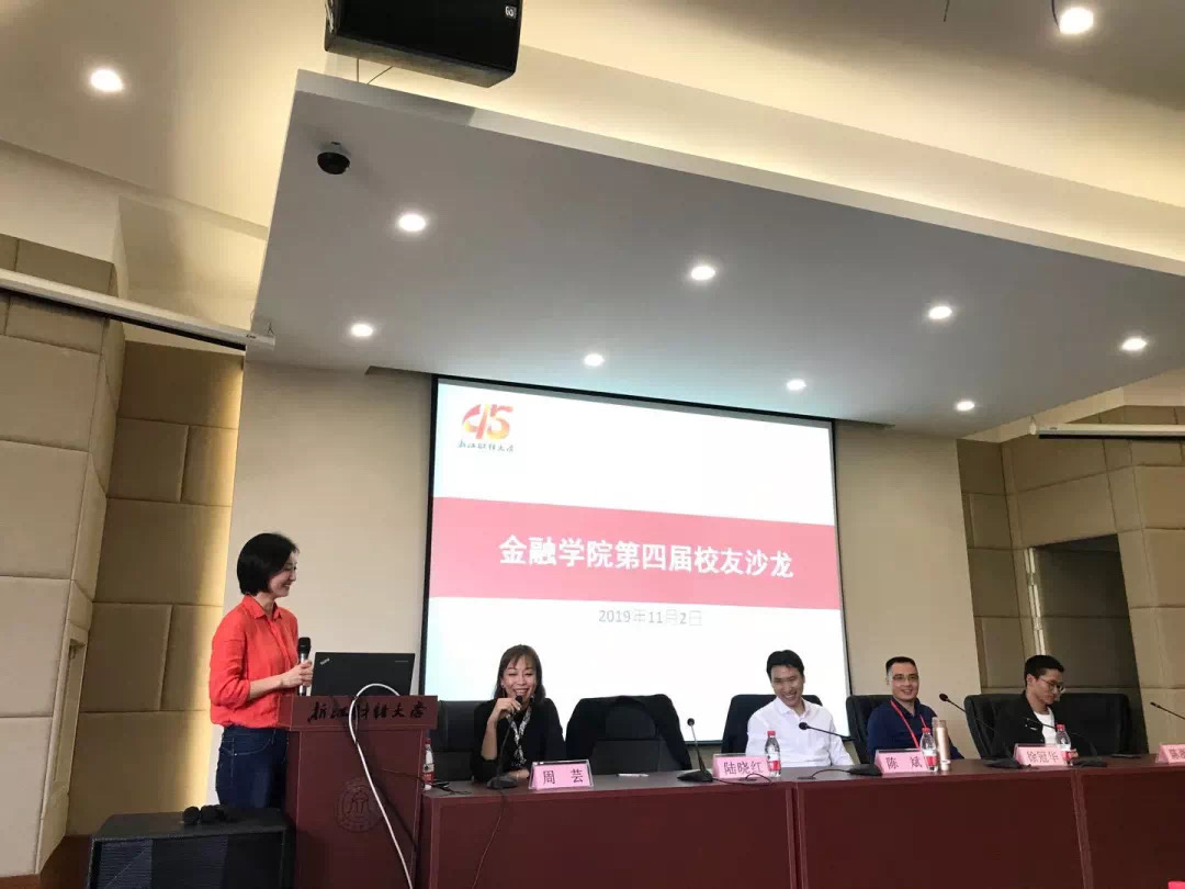 她拥有杭州城市大脑有限公司副总经理、浙江银杏谷投资有限公司合伙人、副总裁等多个头衔;10余年股权投资、公司治理及企业管理的丰厚经验。这次她以主持人的身份回到母校,卓越的口才和随机应变能力助力整场校友沙龙的顺利进行。她以“我们的大学”为主题向在座的学子分享了她的个人经验,她鼓励年轻人应学习拥有一项自己的技能,更应参加丰富多彩的活动拓展自己的眼界。她还为大家播放了“云栖小镇2050”的宣传片,让同学们有所思有所得。
