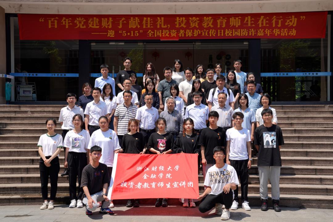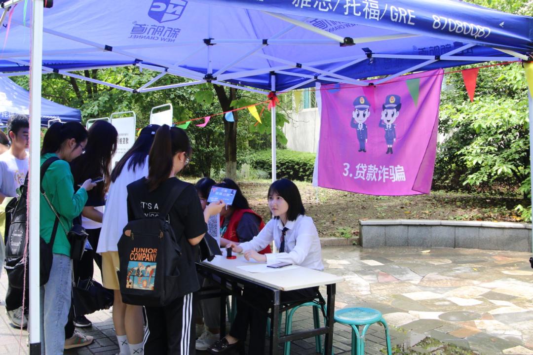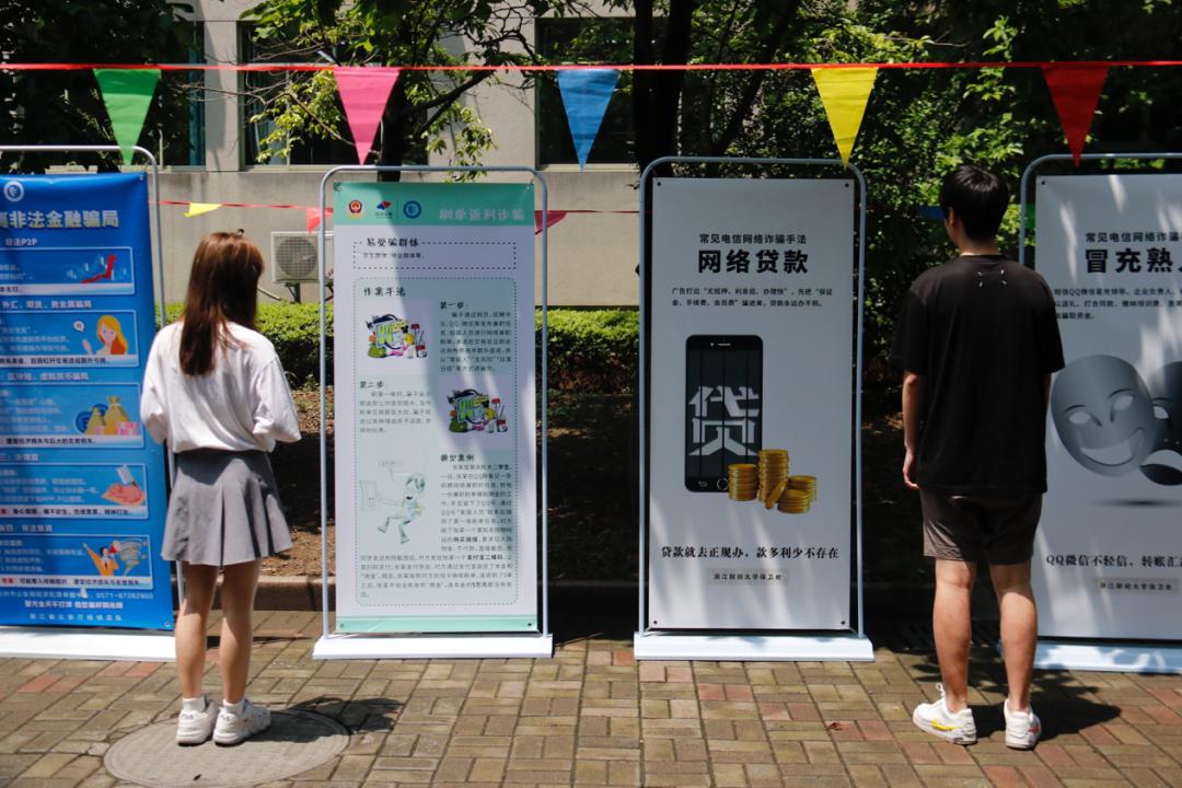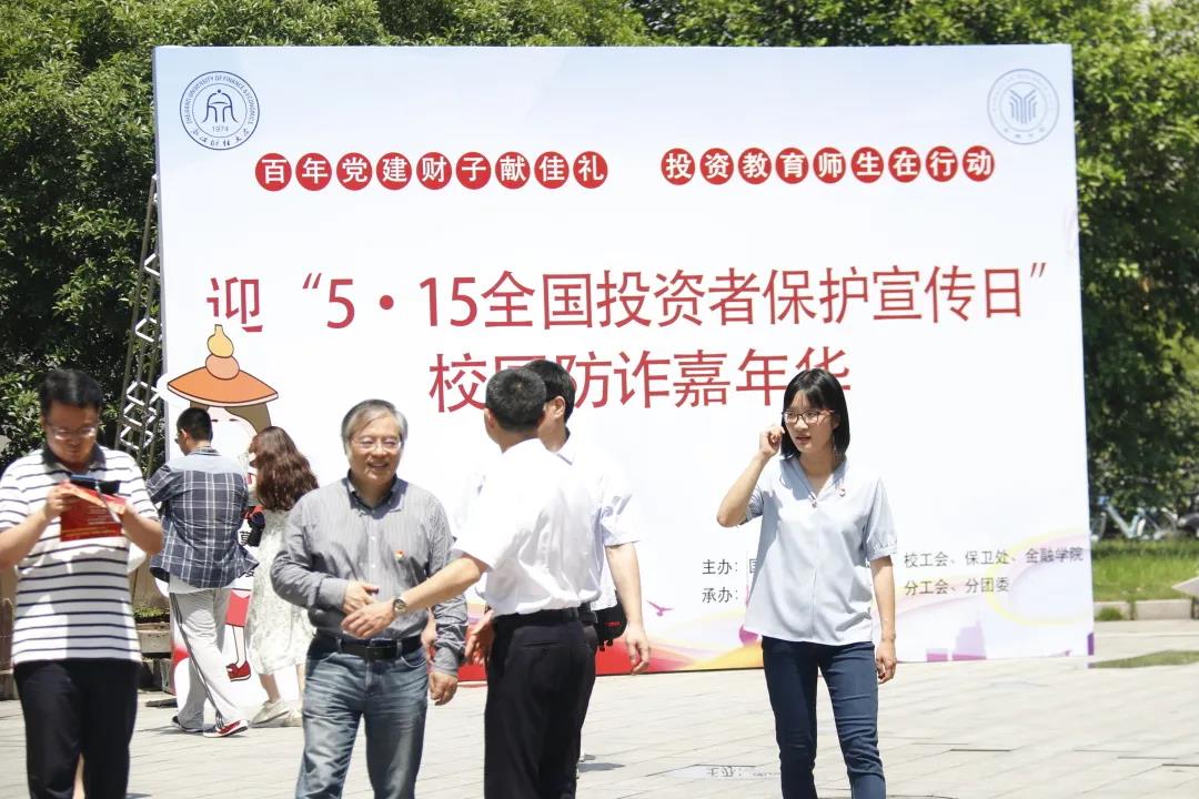 党员教师现场设点,开展“金鹰精服”党员教师志愿服务活动,为全校师生答投资之疑、解理财之惑。浙财大校园里掀起了一场“反诈者联盟总动员”。