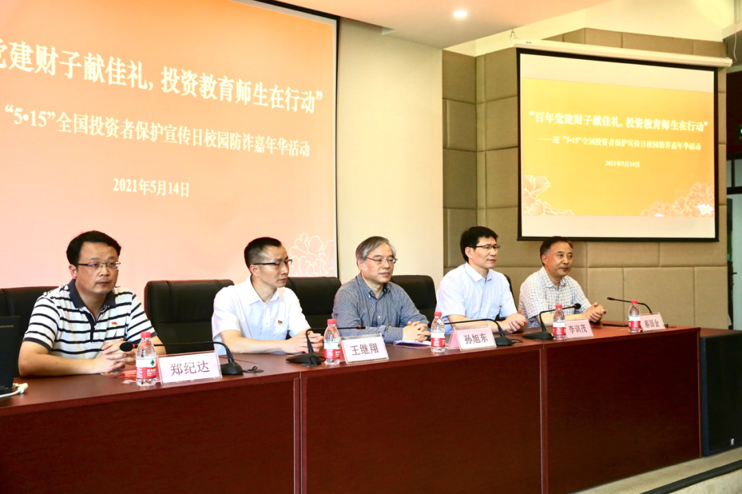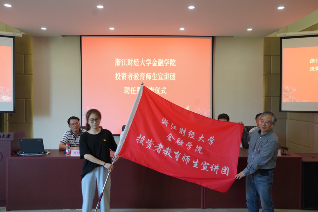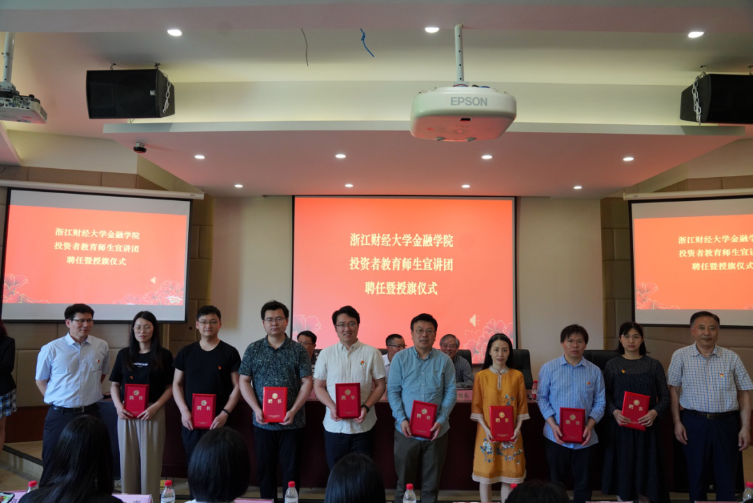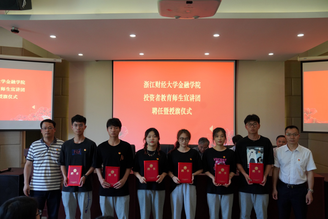 党委继续发挥专业优势,推进“党建+服务”品牌建设,成立“投资者教育”师生宣讲团,与会领导和嘉宾为宣讲团师生颁发聘书并授旗。