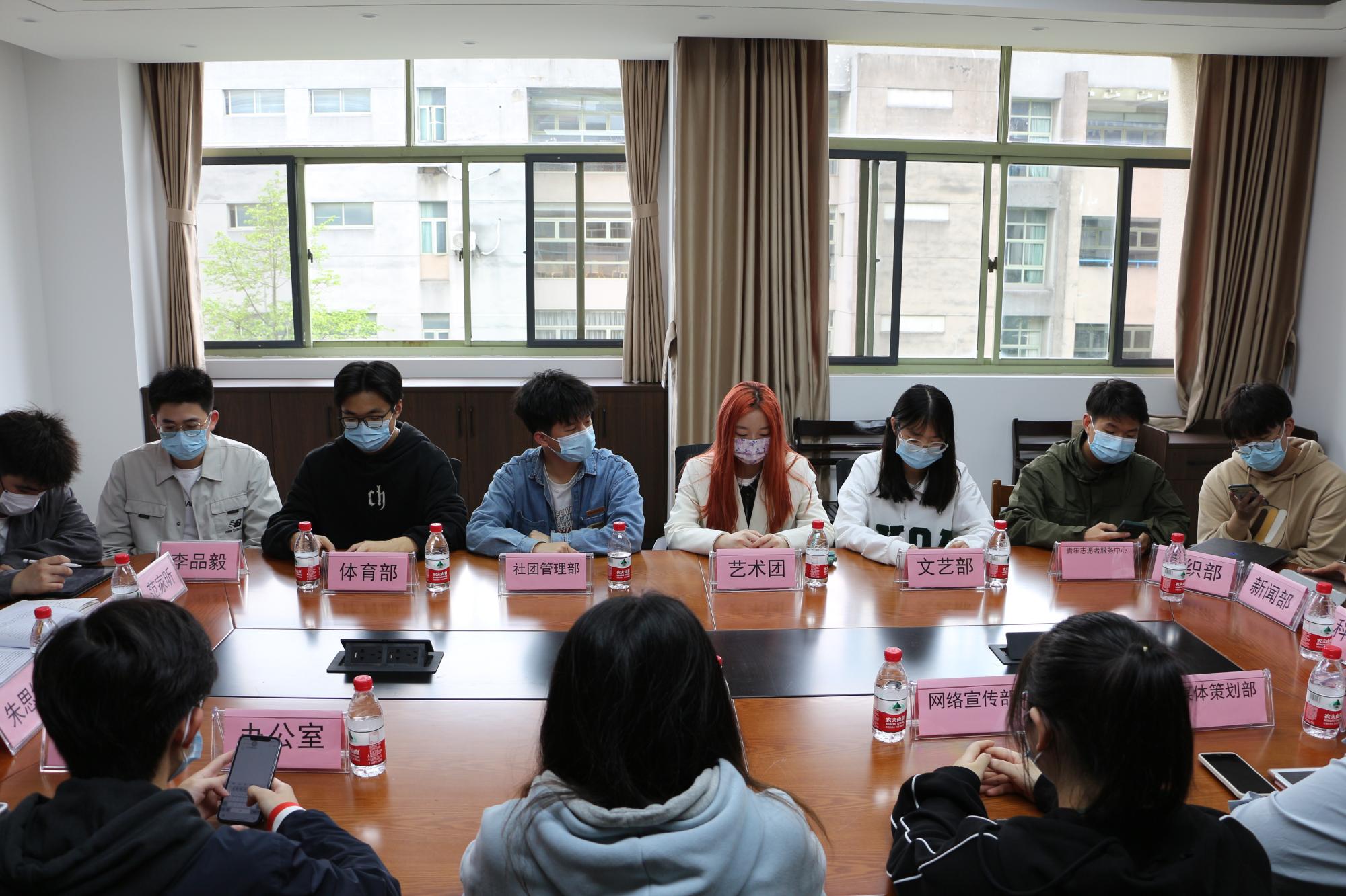 团委书记王伟伟主持,团委副书记范家昕、学生会主席团成员及团委学生会各部门负责人出席本次会议。