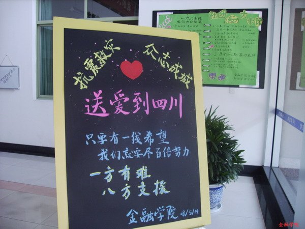 全体师生自发组织了此次以“送爱到四川,抗震救灾,众志成城”为主题的募捐活动,得到了全体师生的大力支持。从14日晚截止到16日中午12点30分,共筹集爱心捐款共计22938.4元人民币。博彩代理