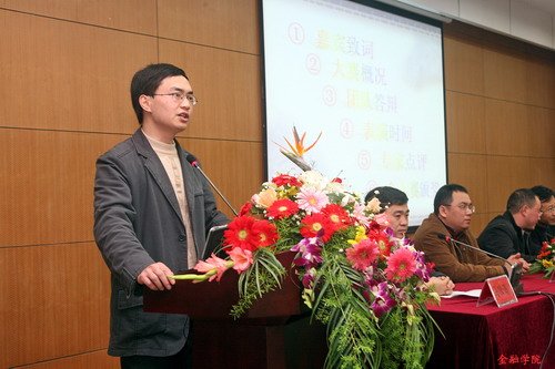 随后,金融学会专业指导老师武鑫老师介绍了本次模拟证券投资竞赛的基本情况。五组优秀团队分别进行了年度投资策略现场答辩。选手们的陈述精彩纷呈,观点鲜明,他们从各个角度剖析了明年的证券投资市场并提出多种独具特色的可行性方案,让专家评委耳目一新。而专家们在认真听取选手们的陈述后,也提出了自己宝贵的意见和建议,使在场的观众受益匪浅。