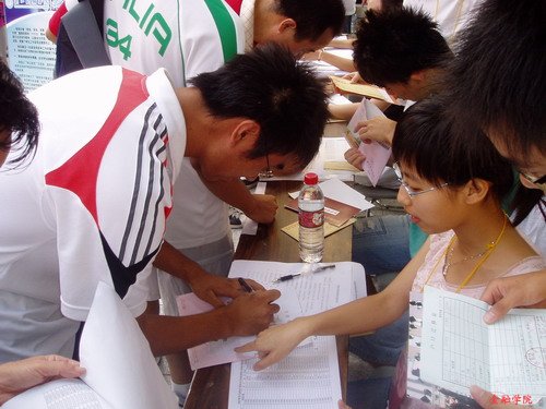 还为家长和同学们组织了“旅行团”,由热心的学长学姐们带队游览校园,他们还真有几分“导游”的味道呢!途中,导游们不仅为大家详细介绍了校内各个建筑的名称和用途,还对学生在校内的日常生活状态作了简洁的说明。谈到自己刚入学时的生活,导游们也不忘教学弟学妹们一些大学生活的小窍门,使同学们听得津津有味。随后,他们还耐心地解答了新生和家长们提出的种种疑问,为学弟学妹们尽快适应大学生活做了提前的准备。