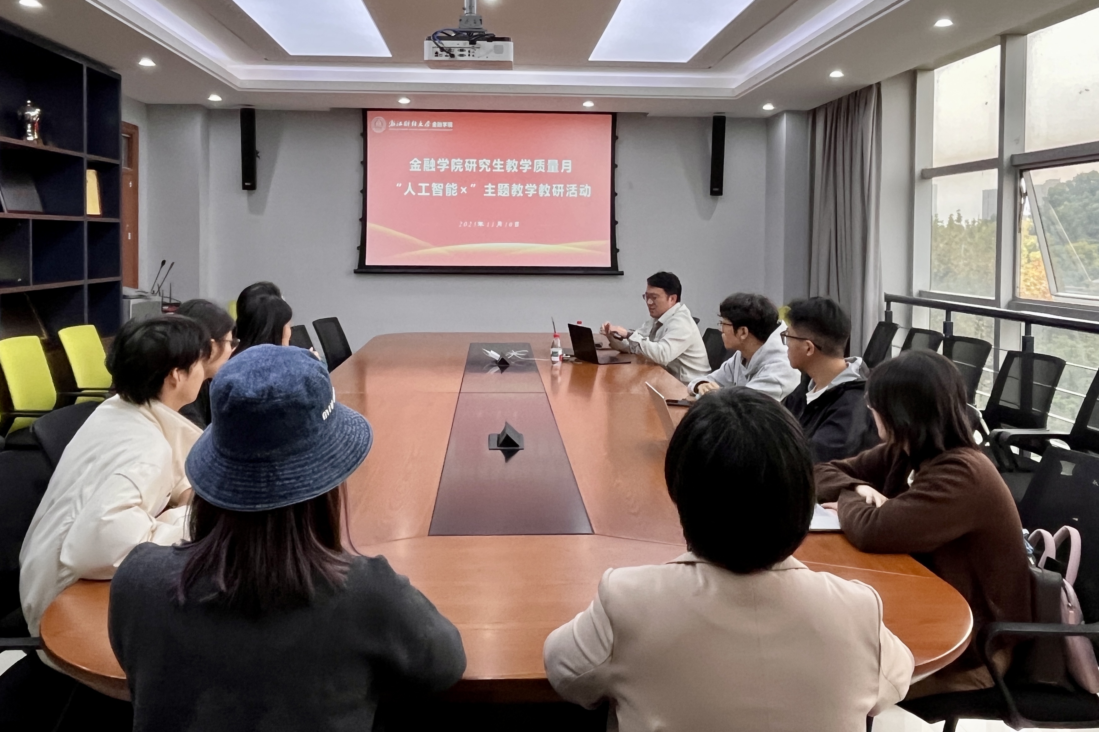 楼422会议室开展以“金融类研究生课程的人工智能应用与课程图谱建设”为主题的研究生教学质量月“人工智能×”主题教学教研活动。