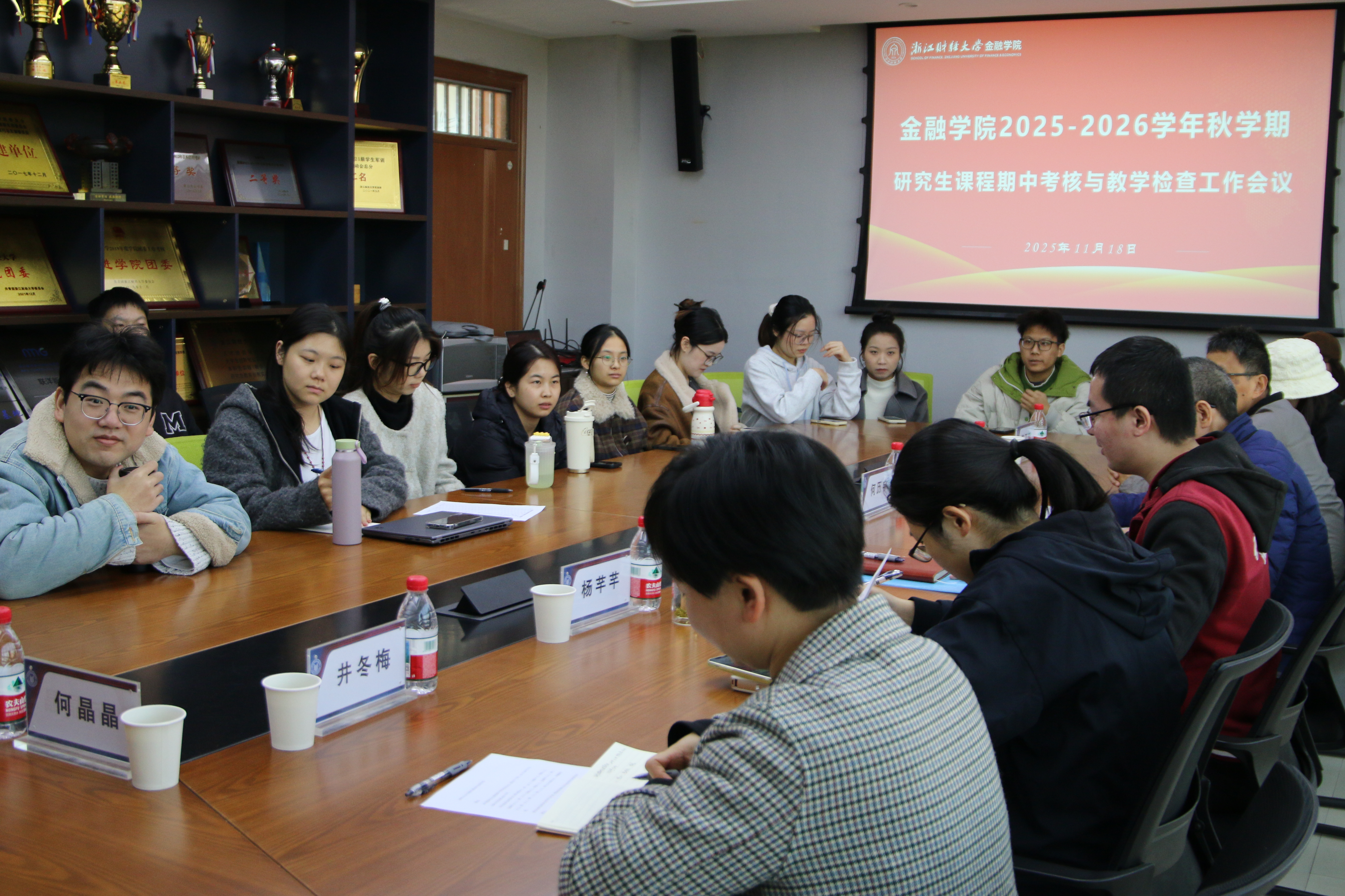 副院长林祺主持,校研究生教育督导组何历宇、院研究生教育督导组钟立新、保险专硕学位点负责人杨芊芊、研究生主管井冬梅、研究生辅导员廖丁瑶和何晶晶,以及各年级研究生代表共同参会。
