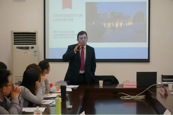 中英金融本硕班同学讲课。首先,Andrikopoulos对考文垂大学的专业设置、教学与科研管理、博彩代理