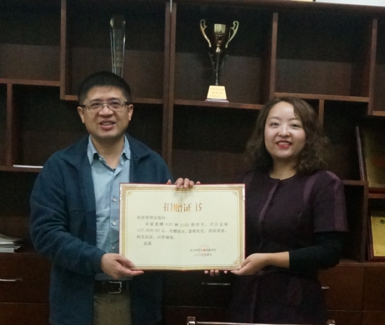 的基本情况,宋娜介绍了经济管理出版社的情况,并表达了捐书的现实意义。会上,陈院长向宋娜颁发了捐赠证书,并合影留念。捐书仪式后,双方还对可能开展的双赢合作项目进行了座谈。