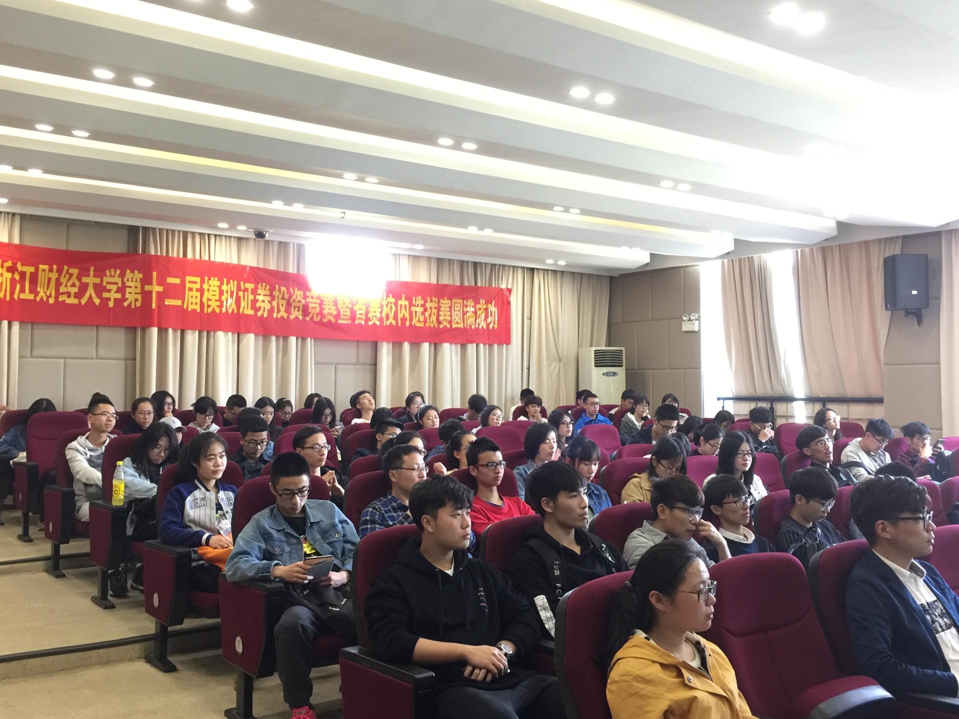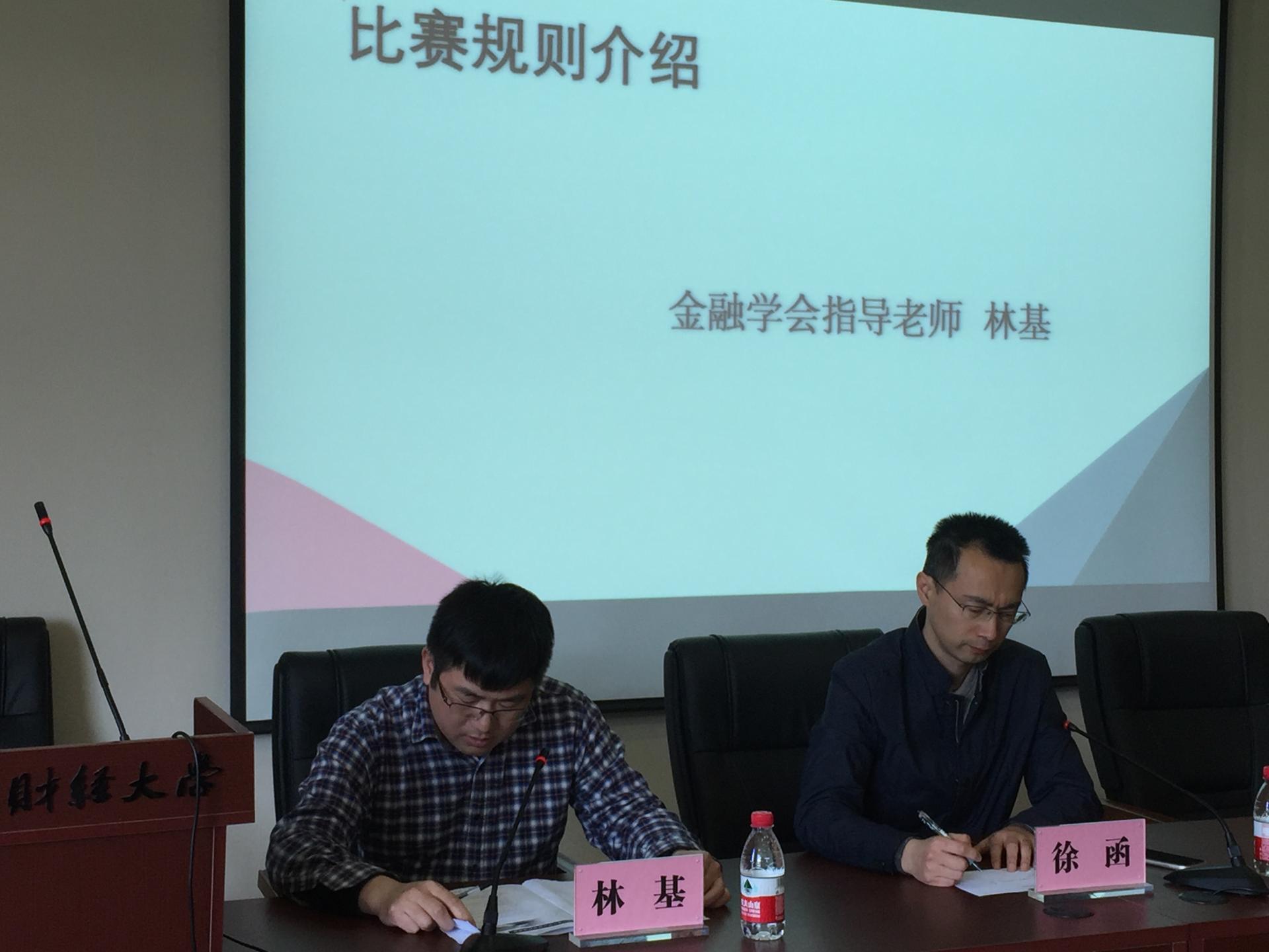 学子们踊跃参加,挖掘潜能。其次,由金融学会指导老师林基老师为我们解读本次竞赛的省赛方案、校赛方案及具体的比赛规则。后来,金融学会行政指导老师吴轶韵老师向我们介绍了比赛的相关奖励,重点强调了校方对本次比赛的重视,及对该方面人才的看重。接着,浙江省大学生证券投资竞赛办公室主任徐函