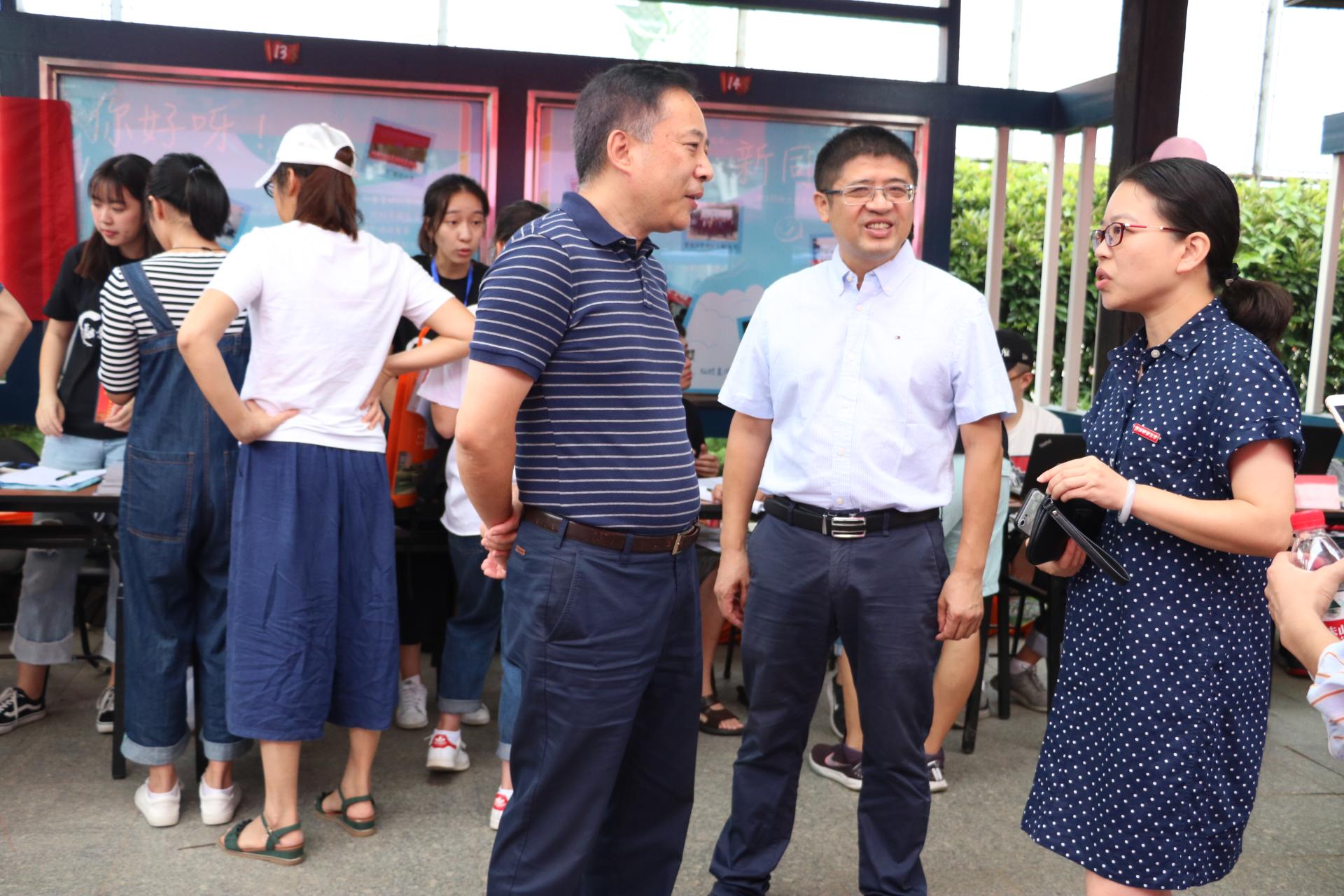 院长陈荣达、党委书记蔡国金、党委副书记叶秀、新生辅导员也来到迎新现场与新生及家长沟通交流。