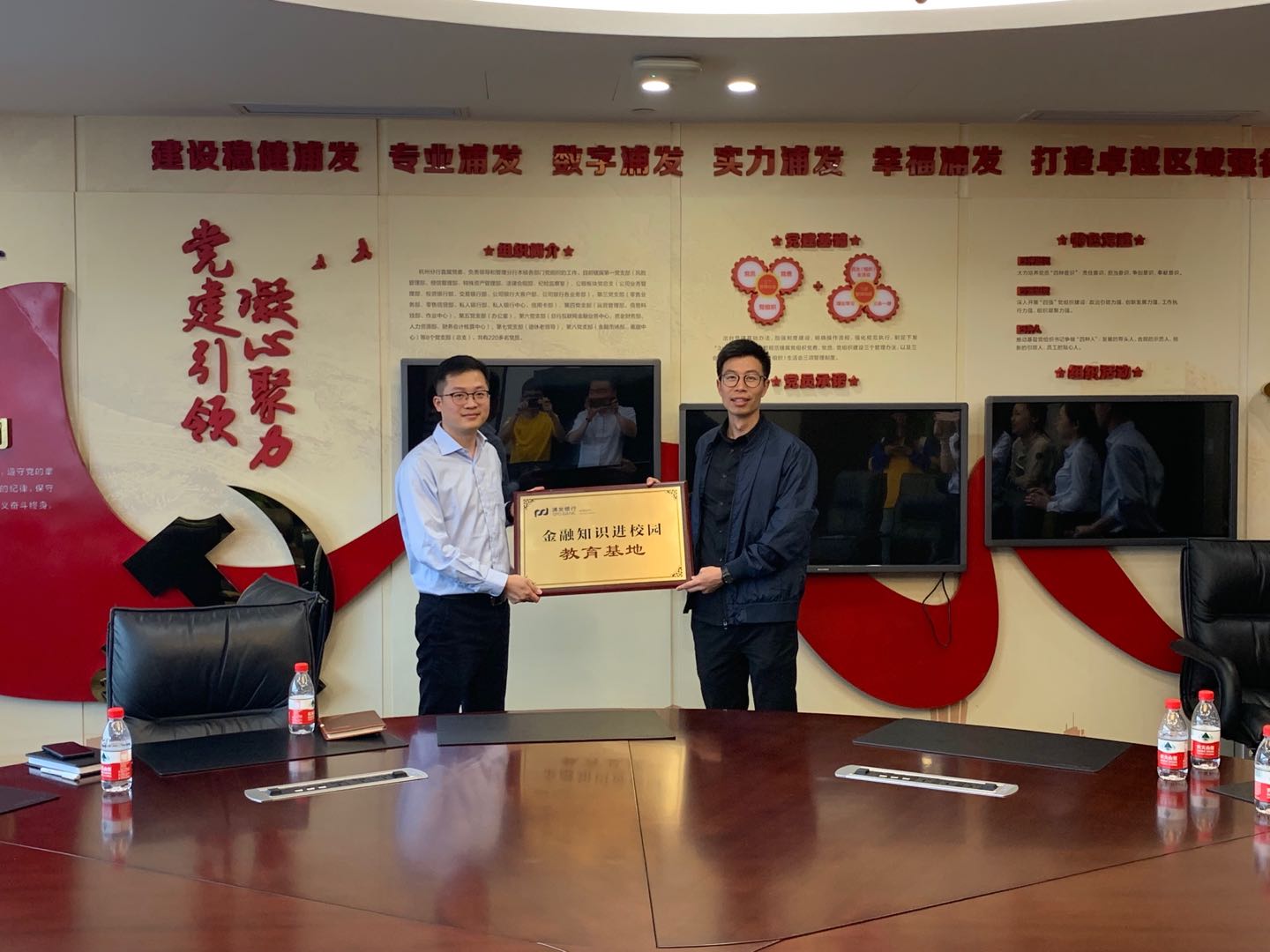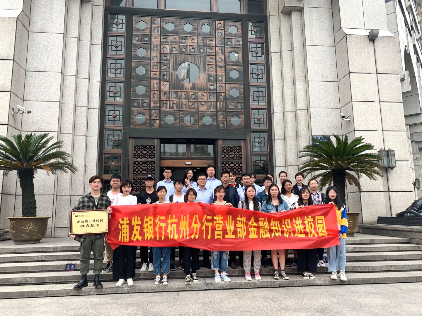 青年学生代表来到浦东发展银行杭州分行参观学习。