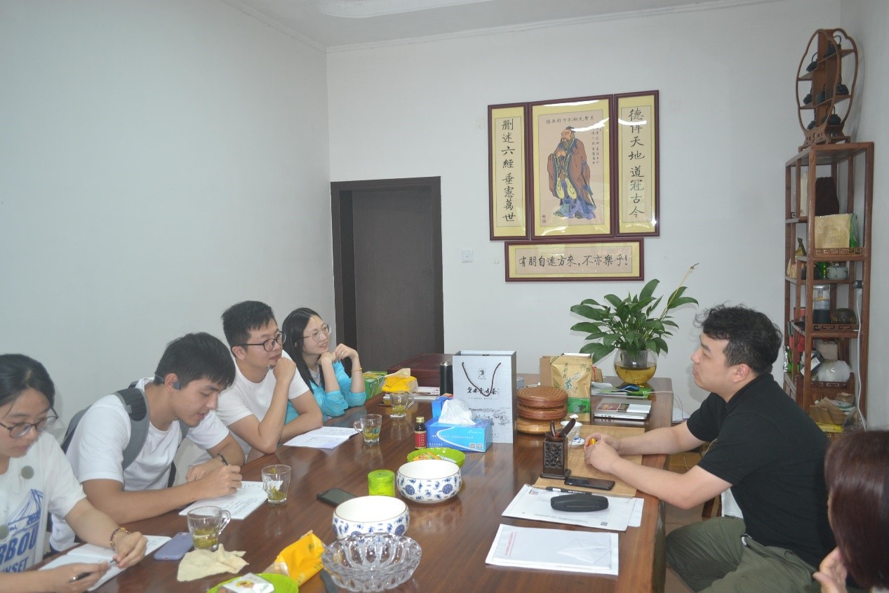 暑期社会实践团在辅导员沈耀杰的带领下,来到浙江磐安考察当地茶文化。