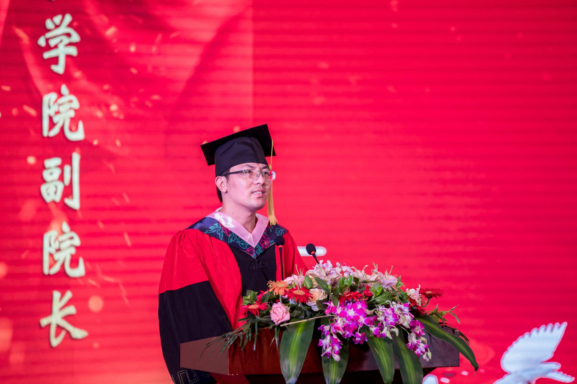 毕业生代表16金融工程1班王家辉同学回顾了自己在浙财学习的难忘经历,表达了对母校的深厚感激之情和开创美好未来的信心和勇气。