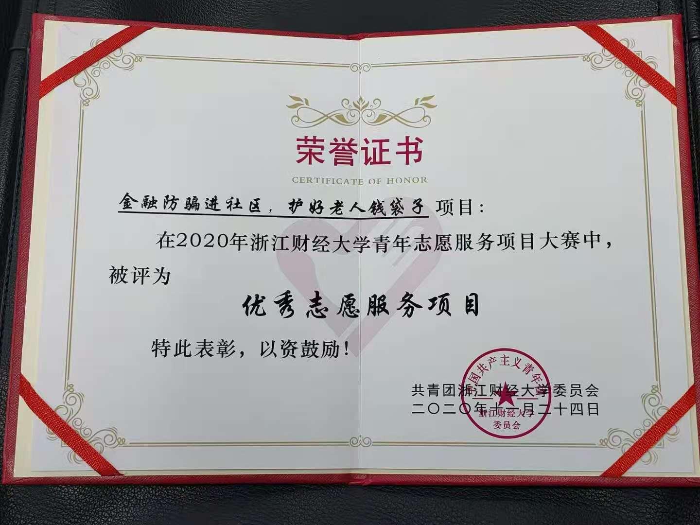 青志的“金融防骗进社区,护好老人钱袋子”活动被评为“校优秀志愿项目”,博彩代理