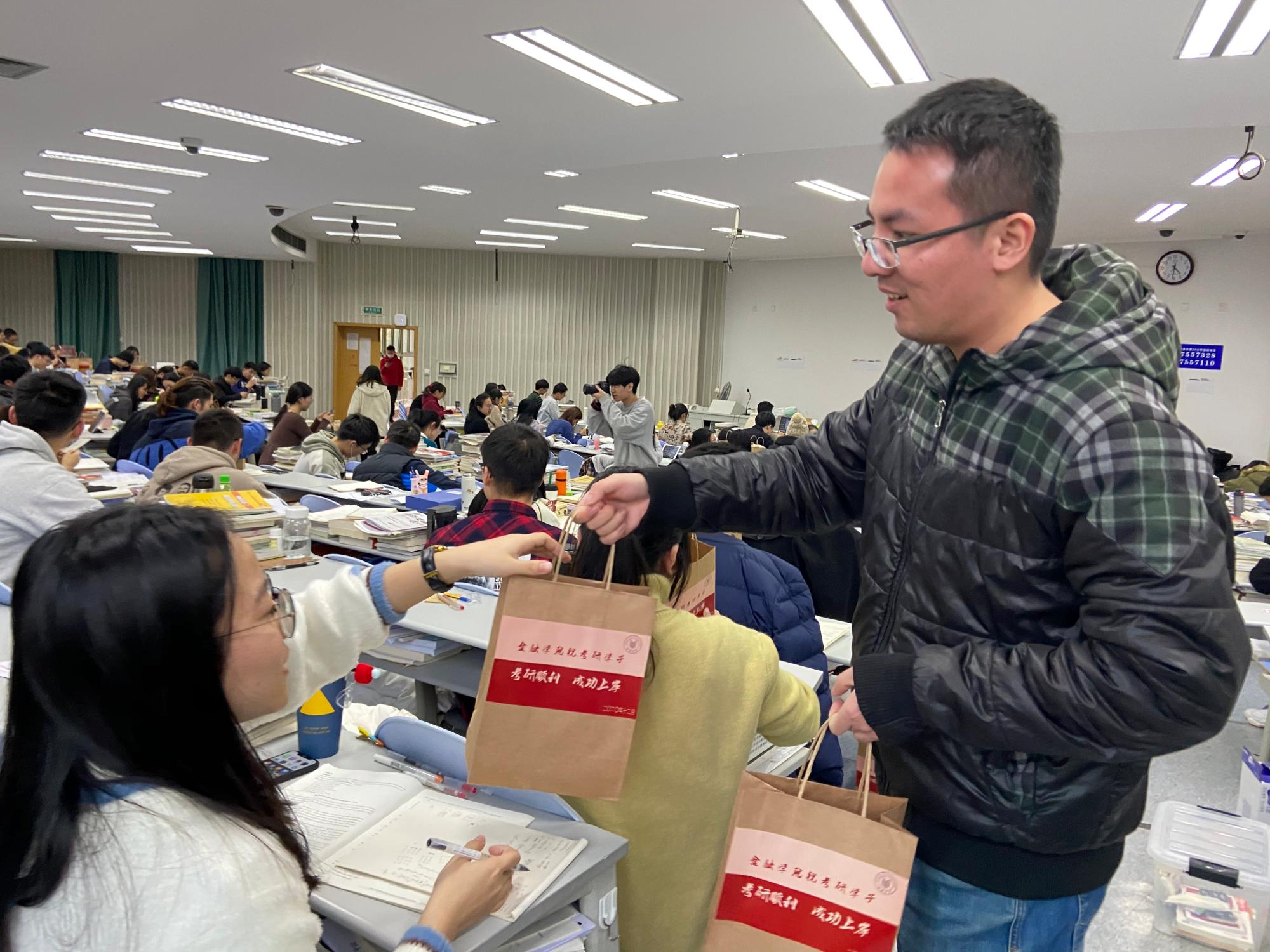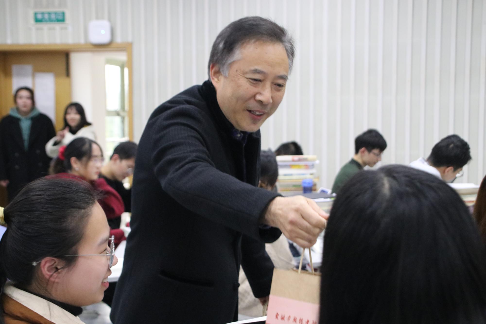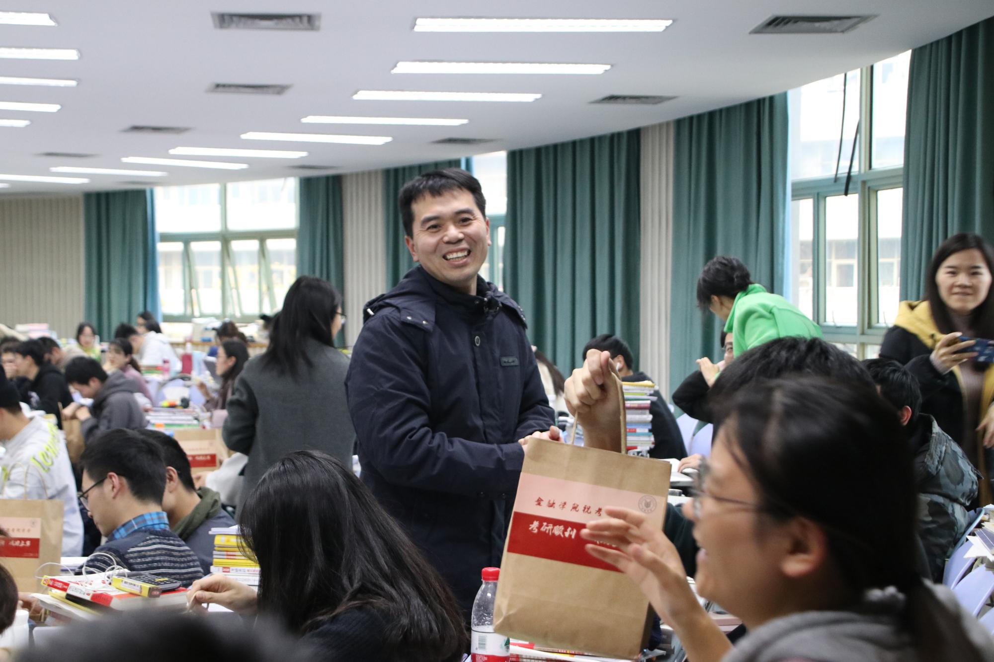 党委书记蔡国金、党委副书记谢敏、副院长林祺、傅俊辉、17级辅导员吴轶韵、翟丽媛来到考研教室,看望考研学生,为备战冲刺阶段的同学们送上冬日的慰问与祝福。