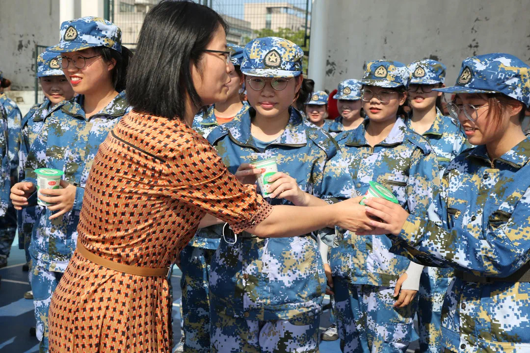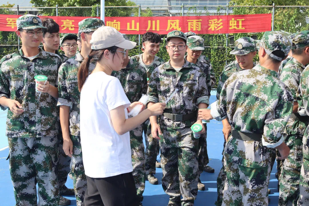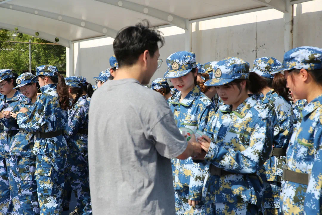 全体承训教官和正在军训的20级全体同学,并为刻苦训练的金融学子送上清凉。