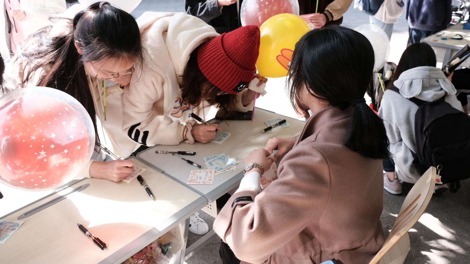 为女生们准备了不同颜色的气球。按照活动规则,她们找寻拥有其他颜色气球的小伙伴们进行组队。成功集齐三色气球的“小联盟”成员们,每人都可得到一份精美的小礼品。礼品丰富,包括纪念胸针、纪念书签、多样便利贴等。参与活动的女生们表示不仅收获了春日里的温暖和美好,也增进了彼此的友谊。