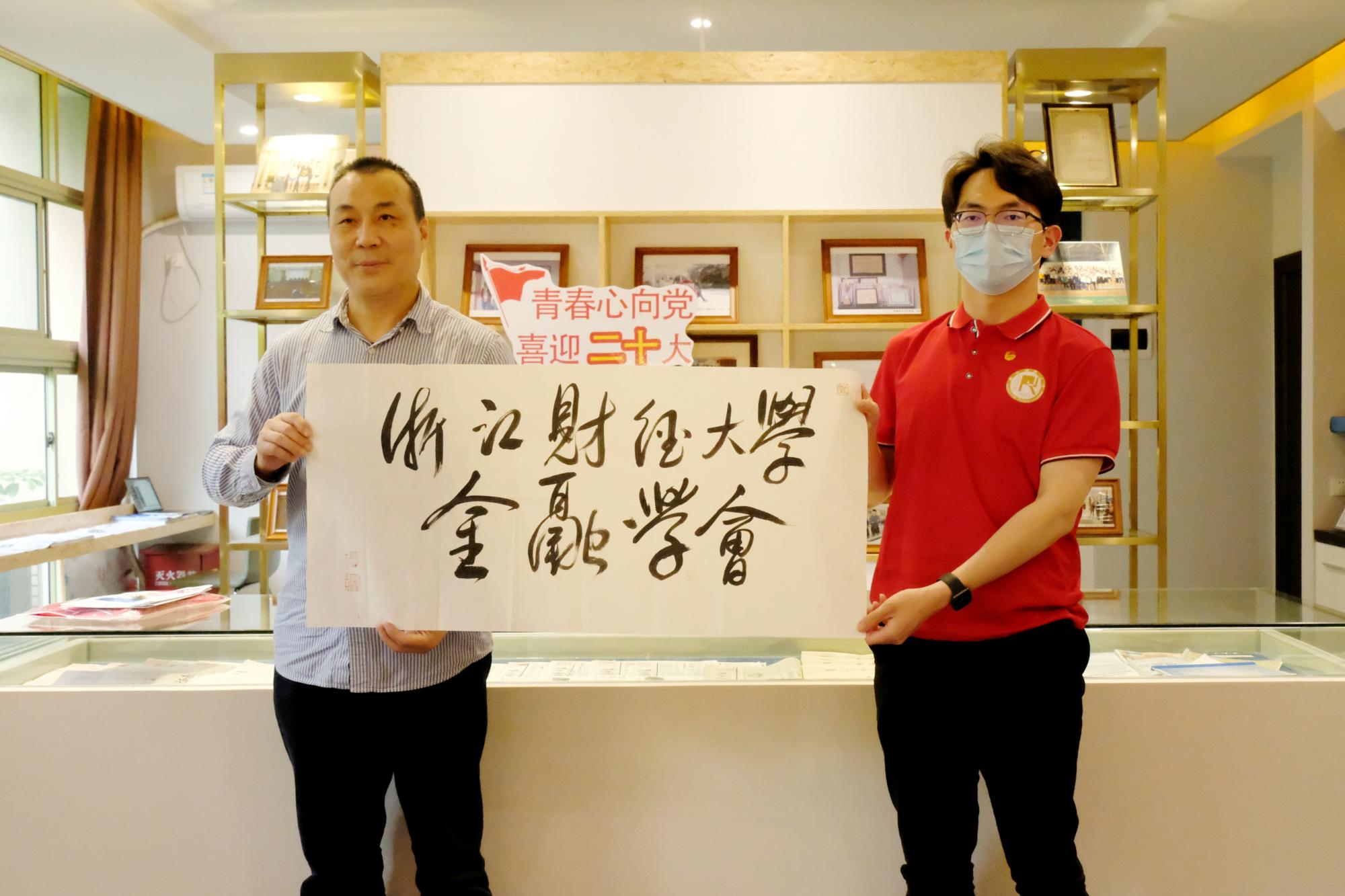 活动最后,金融学会代表向李书记赠送了学会徽章、会刊和会服留作纪念。李书记也向金融学会赠送了亲笔书写的书法作品一份,借此表达对金融学会寄予的厚望。
