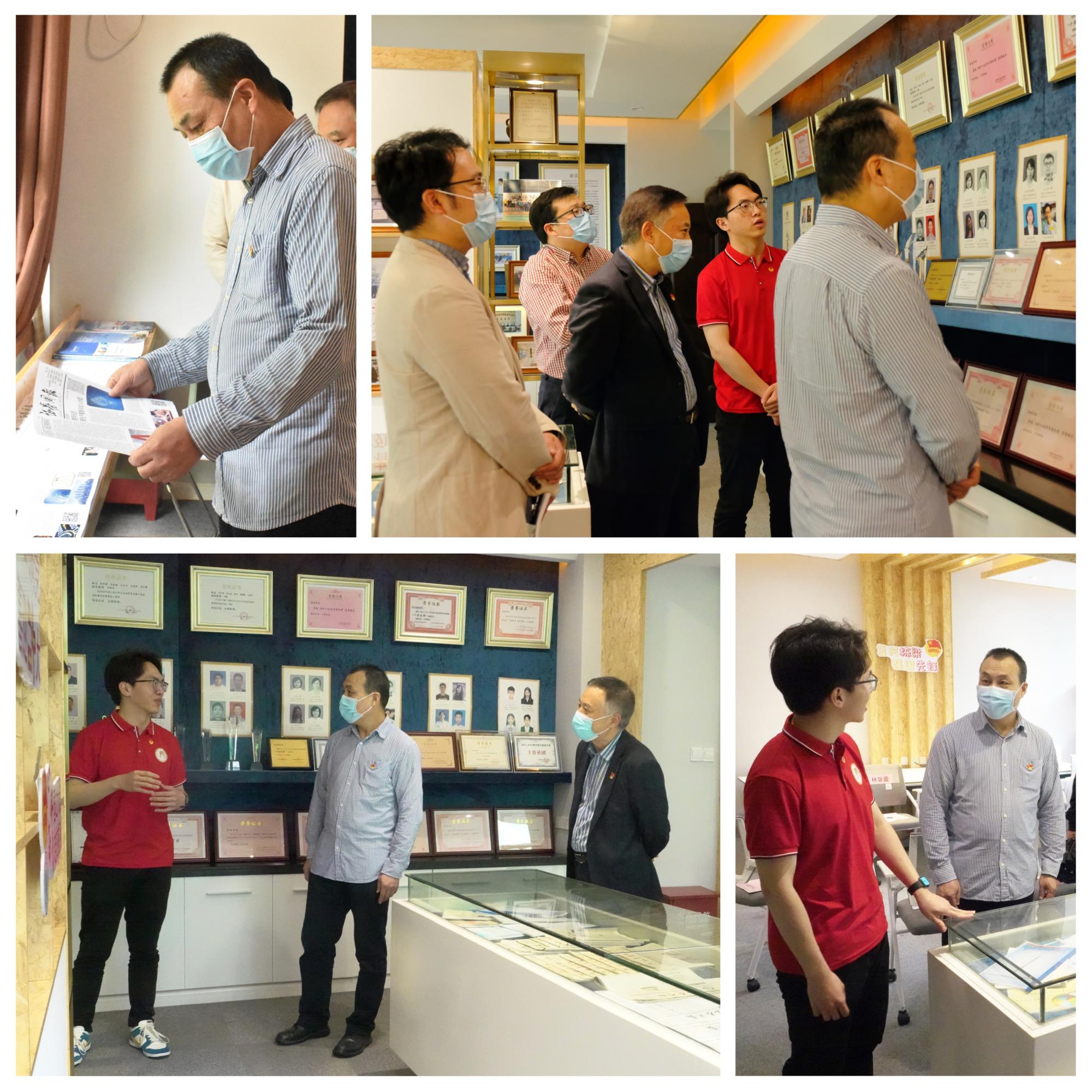 “展柜里陈列的是历年的证券周报,一期都没断过”“那个时候一份证券周报学长们卖五毛钱,积攒了经费用来发展社团建设”“这是我们28届所有会长的形象照,其中有学长成立的私募基金公司规模已达上百亿”,李书记饶有兴致的边听边看,并对学会的发展表示了充分的肯定。