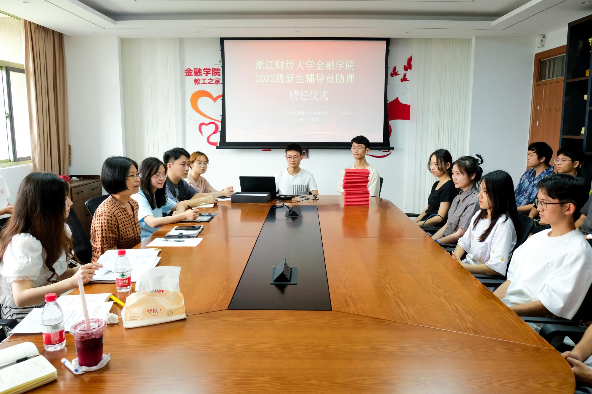 于党员之家举行了2022级新生班导聘任仪式。学院党委副书记谢敏,团委书记王伟伟,学生工作办公室副主任谢琳,辅导员陈信、沈晓云、卢轩宇、廖丁瑶、刘仰璟,2022级新生班导参加了此次仪式。