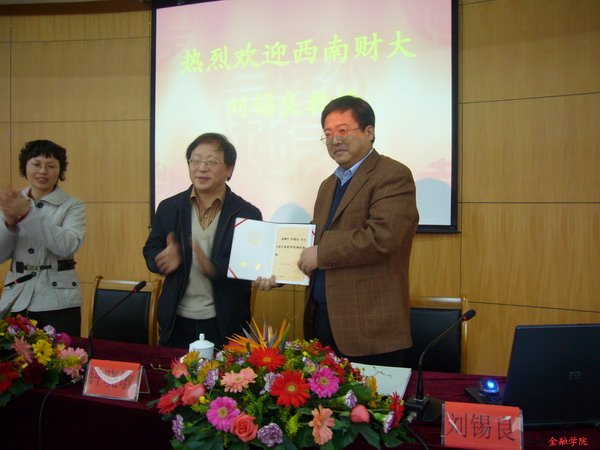 院长虞群娥教授等嘉宾出席了本次讲座。钟晓敏副校长向刘锡良教授颁发浙江财经博彩代理
