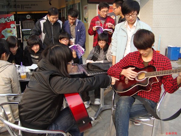 “小陈,都说你吉他弹得非常棒,借着这次班级沙龙的机会,我可是专门来向你请教的!”“过奖了啦,小赵!我也只不过是练过一段时间罢了,没那么厉害,倒也可以教你两招。这里手势应该这样,这时候要用到这个技巧……”有人认真地练习起吉他演奏,"Hey, man, let's talk in English." "Sure, could you translate this newspaper article into English?……"也有人兴致勃勃地开始了英语会话……短短的几个小时中,班上同学或热心传授知识经验,或虚心向他人学习,每个人都在这场互教互学的活动中积极表现,也在轻松快乐的时光中得到了许多难得的锻炼。