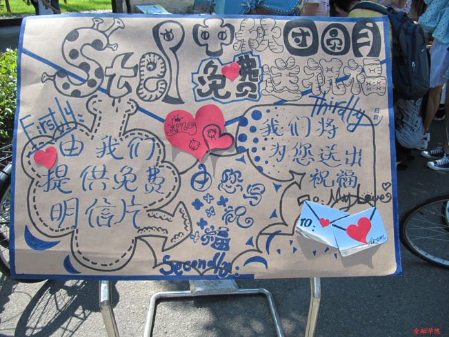 短短的30分钟,100多张明信片已经写满了祝福,但仍有同学前来参加送信活动。最后,干事们细心地整理好装满祝福的信封,虽然汗流浃背,但都十分欣慰。