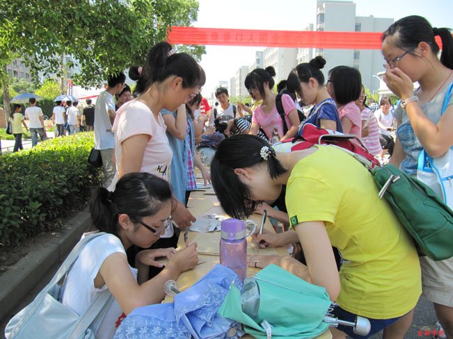 中午12点,正是阳光最烈的时候,但是这丝毫不影响同学们对参与送信活动的热情。院学生会实践部的干事们为同学们准备了精美的明信片和信封,来写明信片的同学络绎不绝。“明信片很漂亮,而且能免费帮我们转达中秋节的祝福,我当然要参加!”一位同学兴高采烈地说道。小小的几张桌子上围满了人,大家都认真地在明信片上写上自己真心的祝福,脸上洋溢着幸福的笑容。明信片有写给爸妈的:“爸妈,中秋节快乐!祝你们身体健康!”也有写给朋友的:“中秋快乐!天天开心!”写完后,干事们帮同学们把明信片装进信封,统一收好。