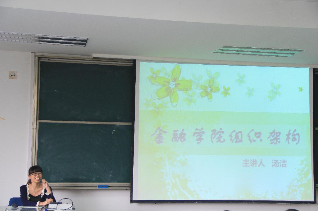 大会在热烈的气氛中拉开了序幕。此次大会共三个环节:分别由学生会主席汤洁介绍学生会的组织架构,学生会外联部副部长裘雯佳介绍礼仪的相关知识,学生会办公室副主任李梦璇讲解公文写作。汤洁主席首先用生动的语言,简洁的流程图充分地展示了学生会组织架构,同时以刚刚落下帷幕的十佳晚会为例讲述了学生会的具体活动流程;而后汤洁主席通过一系列的照片展示了由学生会主办的精品活动,如书香银行,一元钱工程,毕业生晚会等;最后汤洁主席强调了学生会组织对干事个人成长的作用,即做好各项学生会工作,在锻炼学生各项工作能力的同时,也使大学生活更加精彩更有意义。