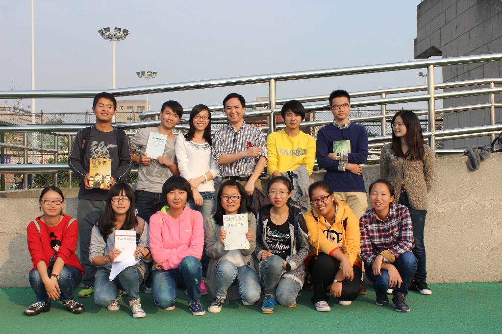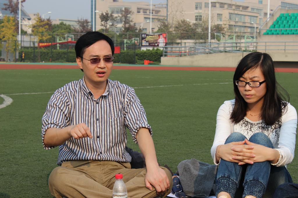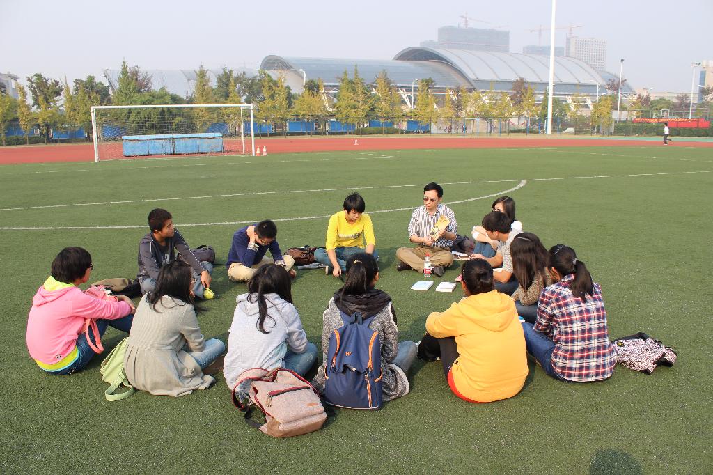 武鑫老师在亲切地向到场的同学们致以问候之后,示意大家在绿茵场上围坐起来。所有人坐下之后,武鑫老师拿出了准备好的5本书籍,分别是《致命的均衡》、《赌金者》、《西方文化中的数学》、《经济发展的转折点:日本经验》以及《金融的逻辑》。武鑫老师不仅向同学们详细介绍了每本书的主要内容,还根据不同书的特性向不同年级的同学们推荐适合阅读的书目。武鑫老师风趣却不失严谨的讲解让同学们对每一本书都有了一睹为快的渴望,而武鑫老师独特的人格魅力使他很快赢得了在场所有同学的敬爱之情。