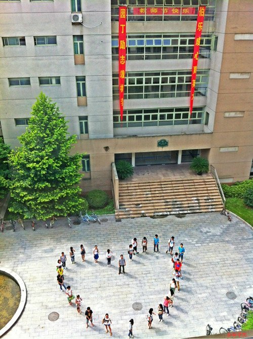 楼的方向喊出对老师们的祝福,声声祝福化作暖流萦绕师生们的心间。