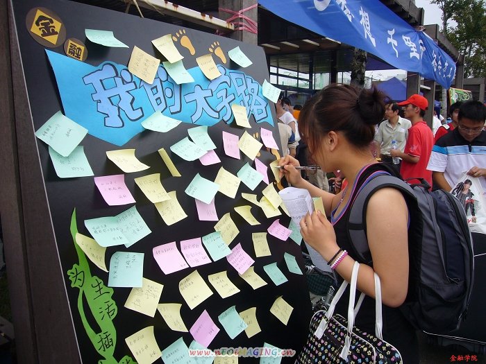 “希望人生就此改变!”“要为未来而努力。”“我要考研!”新生们纷纷写下自己的目标与理想贴在“我的大学路”特色公告栏上。五彩缤纷的展板承载了新生们初生牛犊的壮志雄心和远大理想,引领新生在刚刚踏上大学之路时就树立目标并以此鞭策自己在大学里不断努力进取,这便也是博彩代理