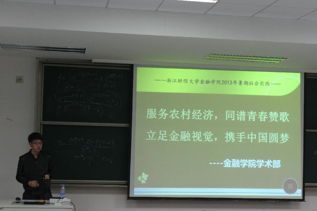 13届金融三班、金融四班和保险班的同学展示11、12届同学的暑期社会实践开展情况,旨在鼓励同学积极参与社会实践,树立认真务实的精神风貌。