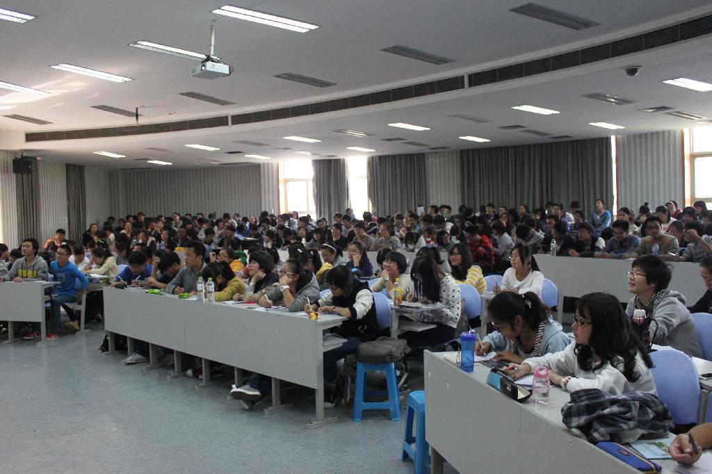 全体13级学生到场听讲。蒋超老师幽默的语言、清晰的讲解让同学们在聆听中领略了老师的风采,获得了知识的熏陶。