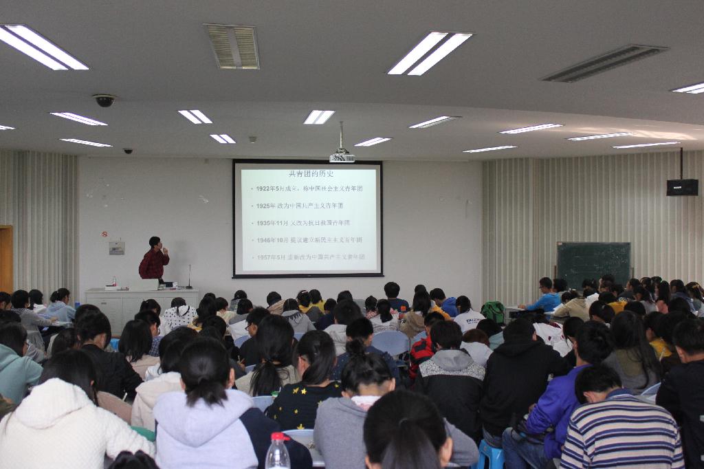 讲座开始后,蒋超老师首先介绍了中国共青团的定义、历史及其重要人物,加深了同学们对中国共青团的了解,激发了他们为团贡献的热忱。接着,蒋超老师又由入党申请书引出了该如何从团员向党员转变的话题。他向同学们阐述了入党的具体步骤并对同学提出了入党相应的要求,着重强调了成为党员所应具备的极强的服务意识。他认为为群众服务不仅是党员的行为准则,更是一种为人处事的基本要求。在讲座的最后,蒋超老师播放了俞敏洪2011年在圆明园前为大学生做的励志演讲,为同学们应该如何度过大学四年带来了启发和鼓舞。