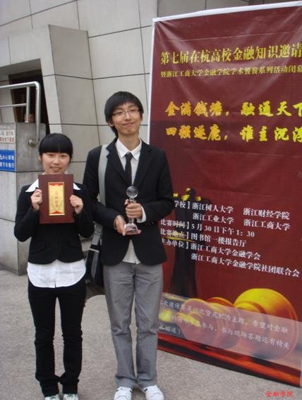 5月31日下午,在浙江工商大学的报告厅内举行了第七届在杭高校金融知识邀请赛。参赛选手们正统的职业套装充分显示了金融学子严谨的态度,而脸上带着的沉稳笑容又同时散发出从容不迫的气质。
