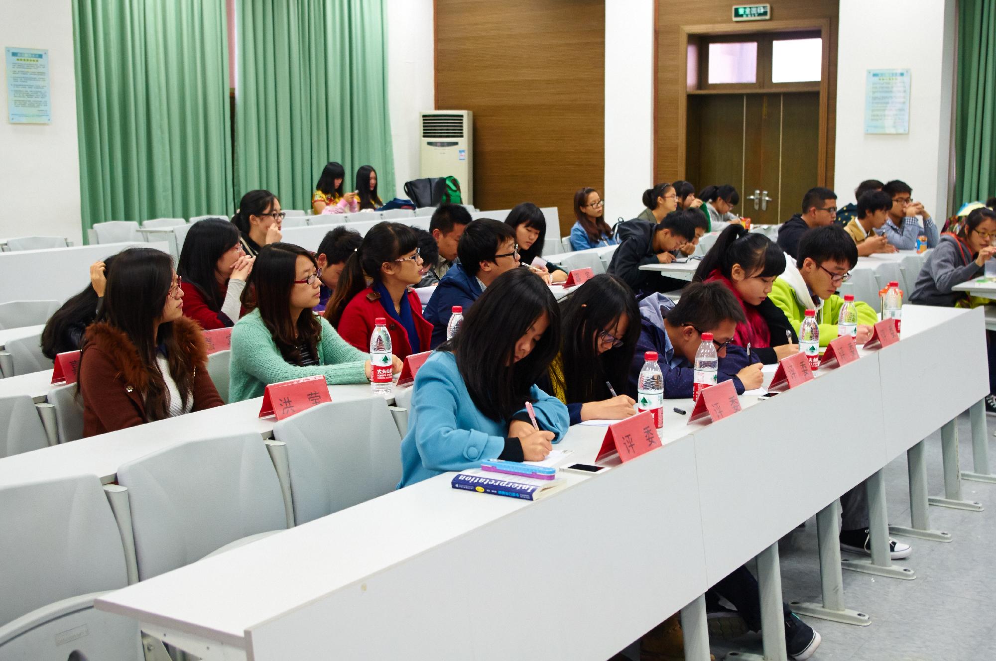 团委学生会主席汤洁,副主席洪莹、李莉、苏婷、叶展旺,并邀请到李天真等五位校优秀辩手担任评委。