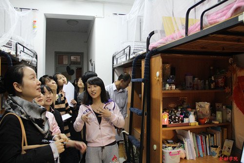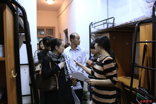 一尘不染的地面,整齐的床铺,井然有序的书桌,特色鲜明的装扮,温馨的氛围,老师们对金融学子整洁文明、各有特色的寝室称赞不已。在走访过程中,各老师与同学们进行了愉快的沟通。学生们为各位老师阐述他们自己寝室的设计理念,向老师展示了寝室的细节特色、文化氛围,并表示寝室就是四人共同的家,必定会用心去装扮它、用实际行动去呵护它。在轻松愉悦的交流中,各位老师深入了解了学生们的寝室文化,对同学们积极向上的心态表示肯定,同时为同学们在生活、学习等方面给出了几点建议。