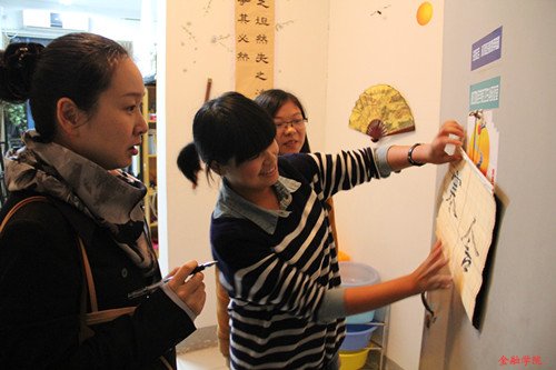 金融学子对寝室的精心装扮独具个性,富有创意。有的寝室废物利用,用各种手工制品将寝室点缀得浪漫温馨;有的以书香为主题,文房四宝,泼墨挥毫之作,满室的书香为学生带去宁静;还有的用跳动的色彩、温暖的照片墙将寝室装扮成四个人的温暖小家。各位老师仔细欣赏了学生们精心装扮的寝室,认真地向学生询问了创意的制作过程后纷纷感叹:“这样用心的温馨布置,真是给了我们家一样的感觉!”