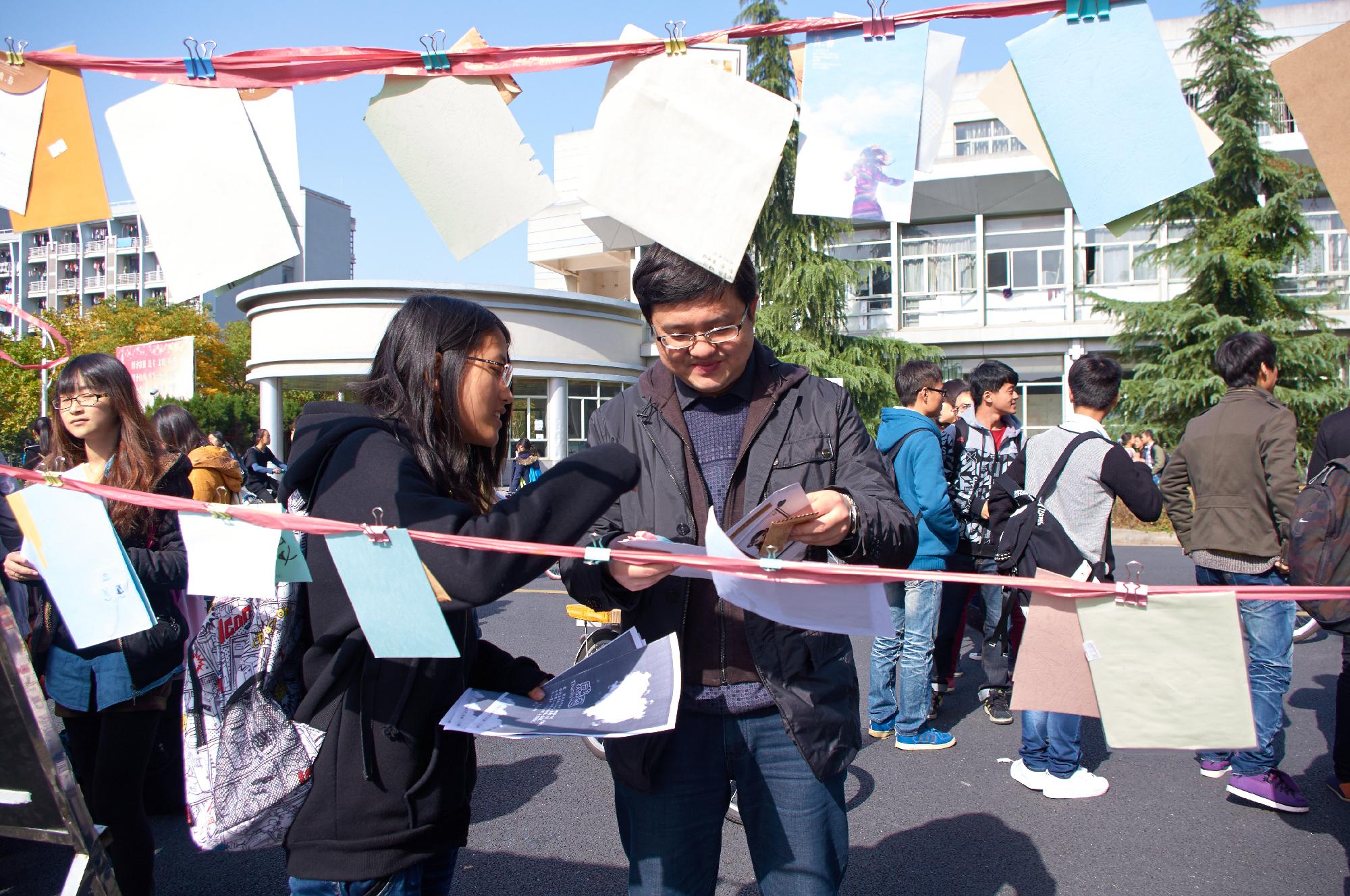12级金融一、二、三、四班团支部的成员们共聚文化长廊,义卖自制的手工贺卡,为博彩代理