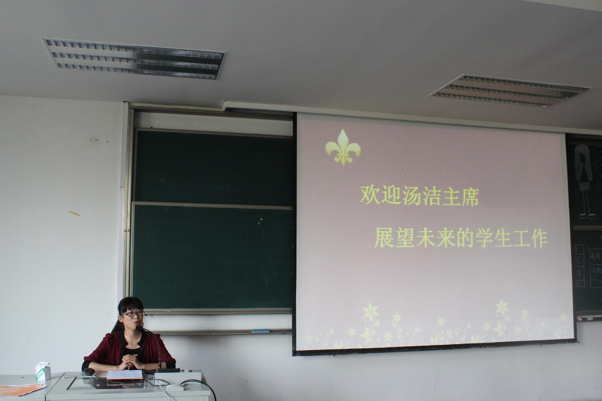 大会主要分为三个部分。首先,由学生会主席汤洁致辞,她对加入学生会的新成员们表示了热烈的欢迎。紧接着她简单总结了上学期的工作,肯定了各部门取得的成绩,并展望了未来学生工作的发展,对学生会的整体发展寄予了厚望。汤洁干练精彩的介绍和引导赢得了满座掌声。