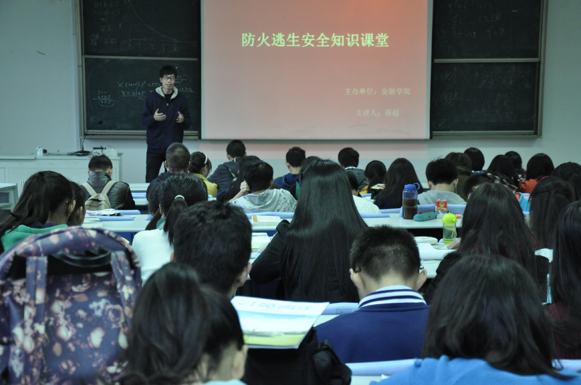 课堂伊始,蒋超老师给同学们播放了防火宣传视频。视频中,有真实的校园火灾情形、相关防火措施、火灾逃生知识以及面临火灾时正确的灭火方式等等。随后,蒋老师又向在场同学强调了防火防灾的重要性。同时,他还向同学们传授了一些防火逃生的安全小知识。同学们在感慨火灾可怕的同时也纷纷表示,防范火灾要从生活中点滴小事做起。在课堂之后,警报声响起,全体同学前往东操场参与了消防演习。