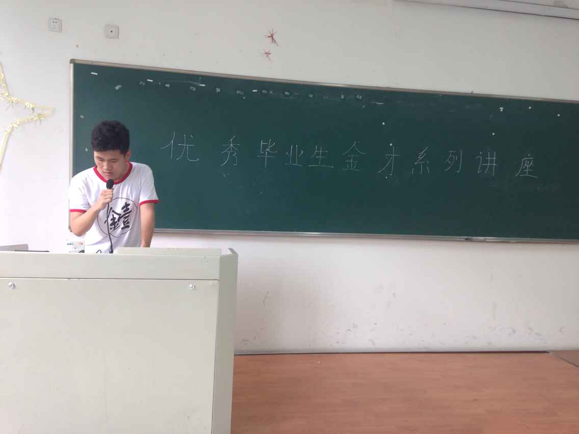 2015年6月14日下午一点半,博彩代理 金才系列讲座之考研篇在博彩代理 楼205教室顺利开展。本次主讲嘉宾是2015届优秀毕业生、以优异成绩被复旦大学录取的许梦谦同学。