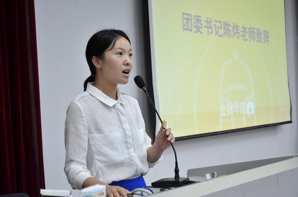 致辞,对干训大会的召开表示热烈的祝贺。他首先肯定了往届学生会所取得的成绩,并对新一届学生会提出了几点希望:学生干部应明确自己的定位、角色与职能,在工作和学习中学会做人做事,积极创新;各部长应树立良好的学生干部模范形象,做好本职工作;希望新一届学生会将学风建设与创新创业作为今后工作重点,在全院范围内营造良好的学风。随后,团委书记陈炜在发言中提出“大心思,小心眼”的工作要求,鼓励学生会成员踏实做好基础工作,注重身边细节,学会换位思考,并希望学生会成员在日后工作中能更具执行力和责任心。